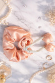 این اسکرانچی از پارچهی ساتن براق و لطیف تهیه شده که جلوهای شیک و زنانه به استایل مو میدهد. طراحی حجیم آن باعث میشود روی مو کاملاً چشمگیر باشد، بدون اینکه مو را بکشد یا آسیب بزند.