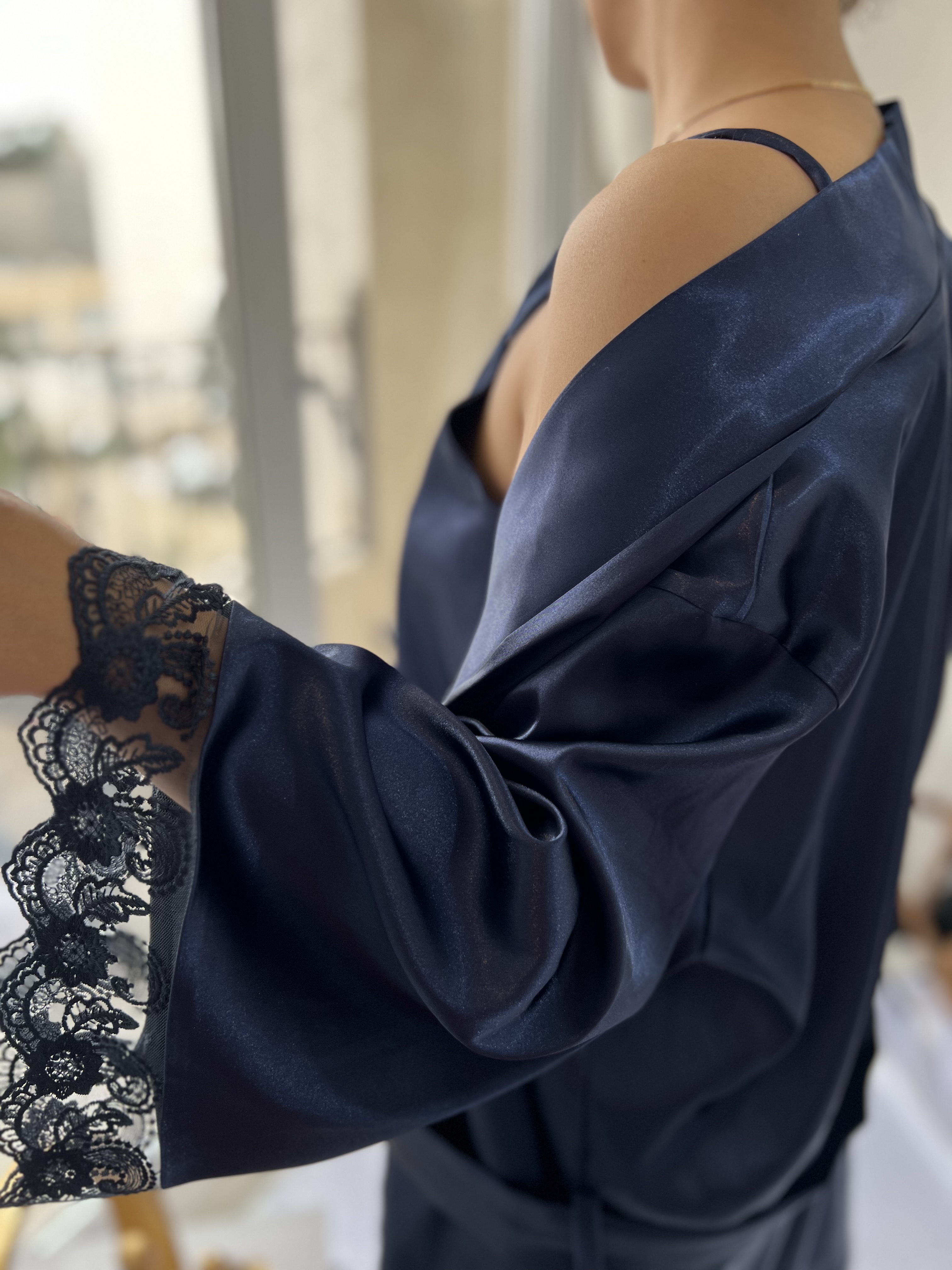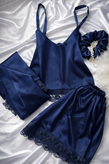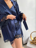ست تاپ شلوارک و روبدوشامبر ساتن ابریشم |گیپور ترک نرم لطیف فوق العاده جذاب سایز بندی متنوع