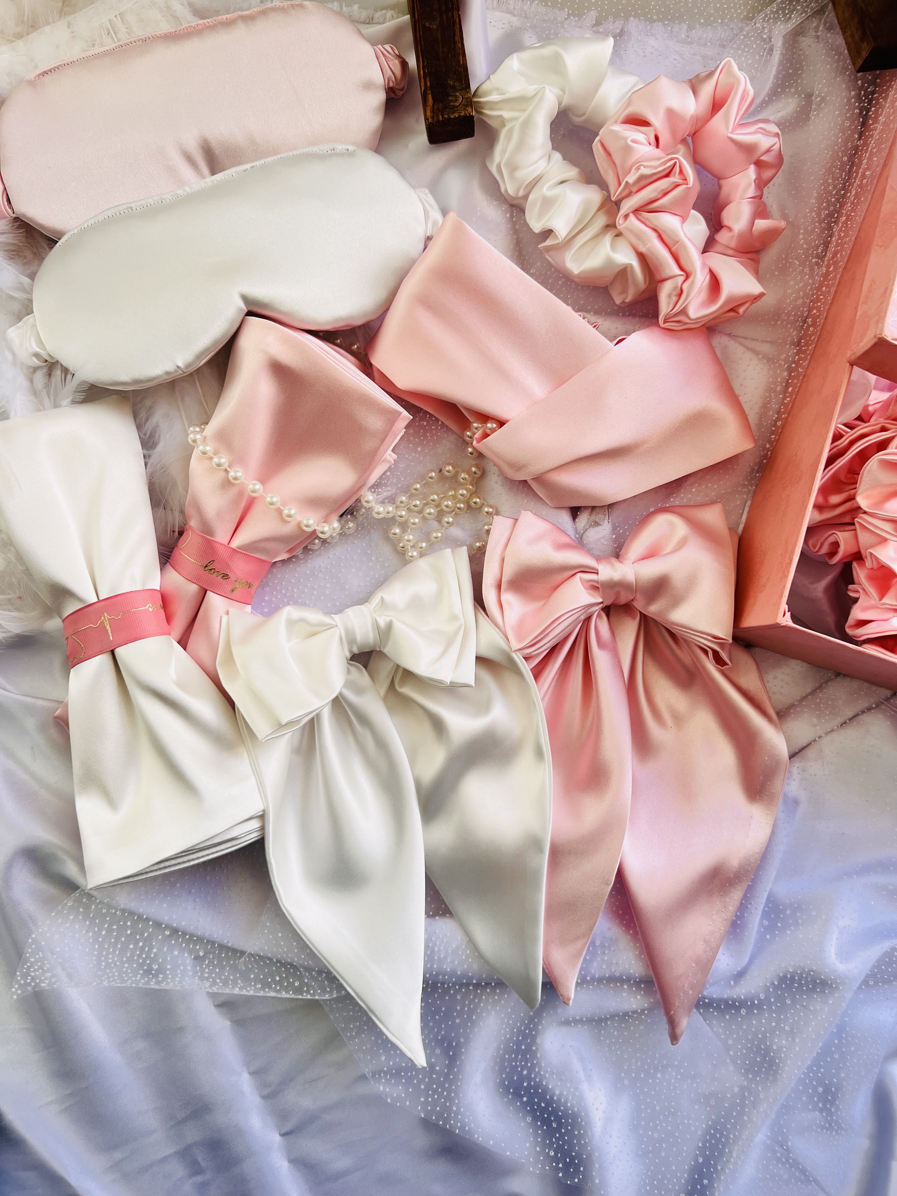 ست شبنم|روبالشتی ،چشم بند،کلاه خواب،اسکرانچی هدیه|ساتن ابریشم ضدتعریق و ضد موخوره